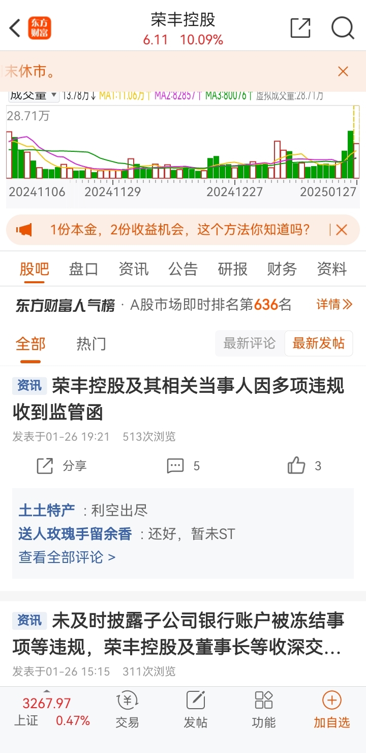 温馨提示: 1.根据《证券法》规定,禁止编造、传播虚假信息或者误导性信息,扰乱证券市场;2.用户在本社区发表的所有资料、言论等仅代表个人观点,与本网站立场无关,不对您构成任何投资建议。用户应基于自己的独立判断,自行决定证券投资并承担相应风险。《东方财富社区管理规定》