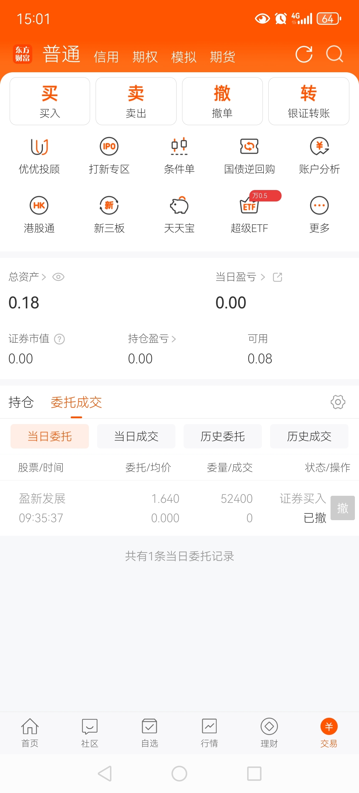 早上预测的最低点在1块6毛4。挂了买单看着实在跌的厉害撤单了不知道对不对。