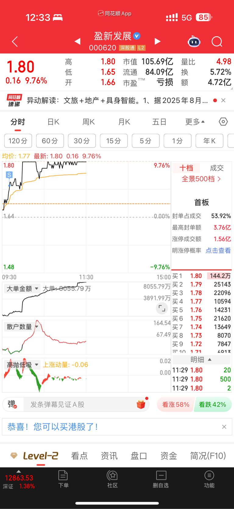 $盈新发展(SZ000620)$ 昨天把我洗了
