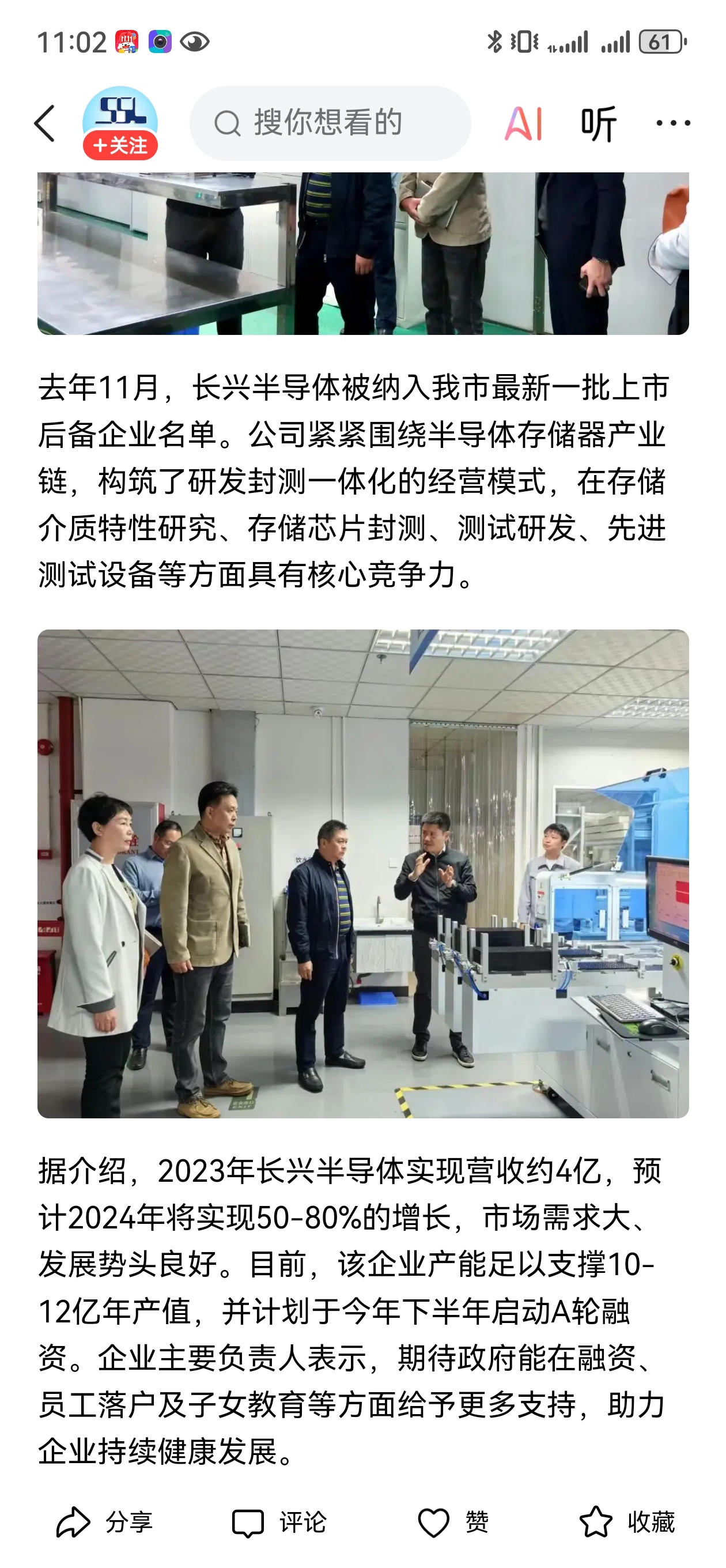 $盈新发展(SZ000620)$ 上市预备,长兴半导体#强势机会# #投资随笔#