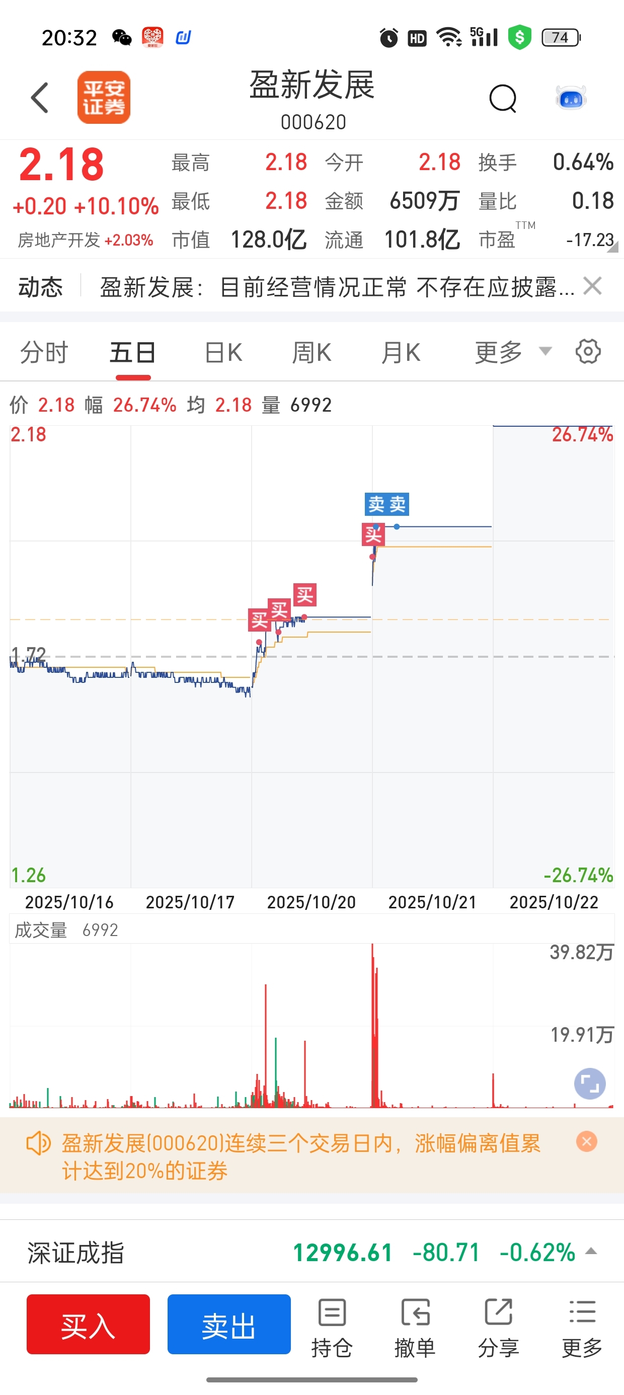 $盈新发展(SZ000620)$ 成功打板,失败的是没拿住,一板就跑了,想着剩点底仓回调没想到卖飞了 ,赚少为输呀……算了,不追了,怕全部吐出来,你我缘尽于此了……