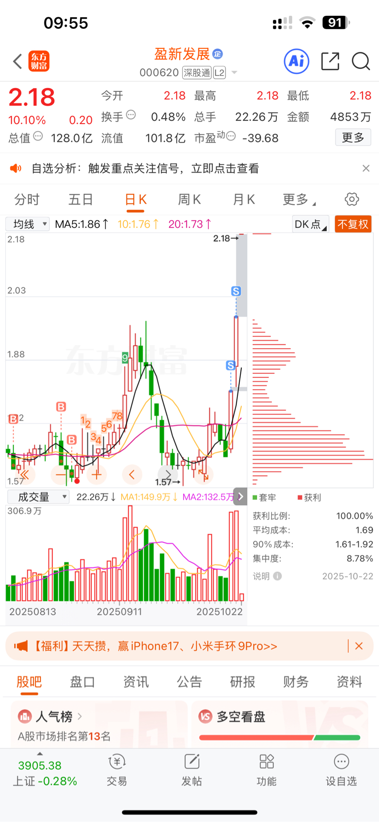 $盈新发展(SZ000620)$ 哎呀,倒在黎明前