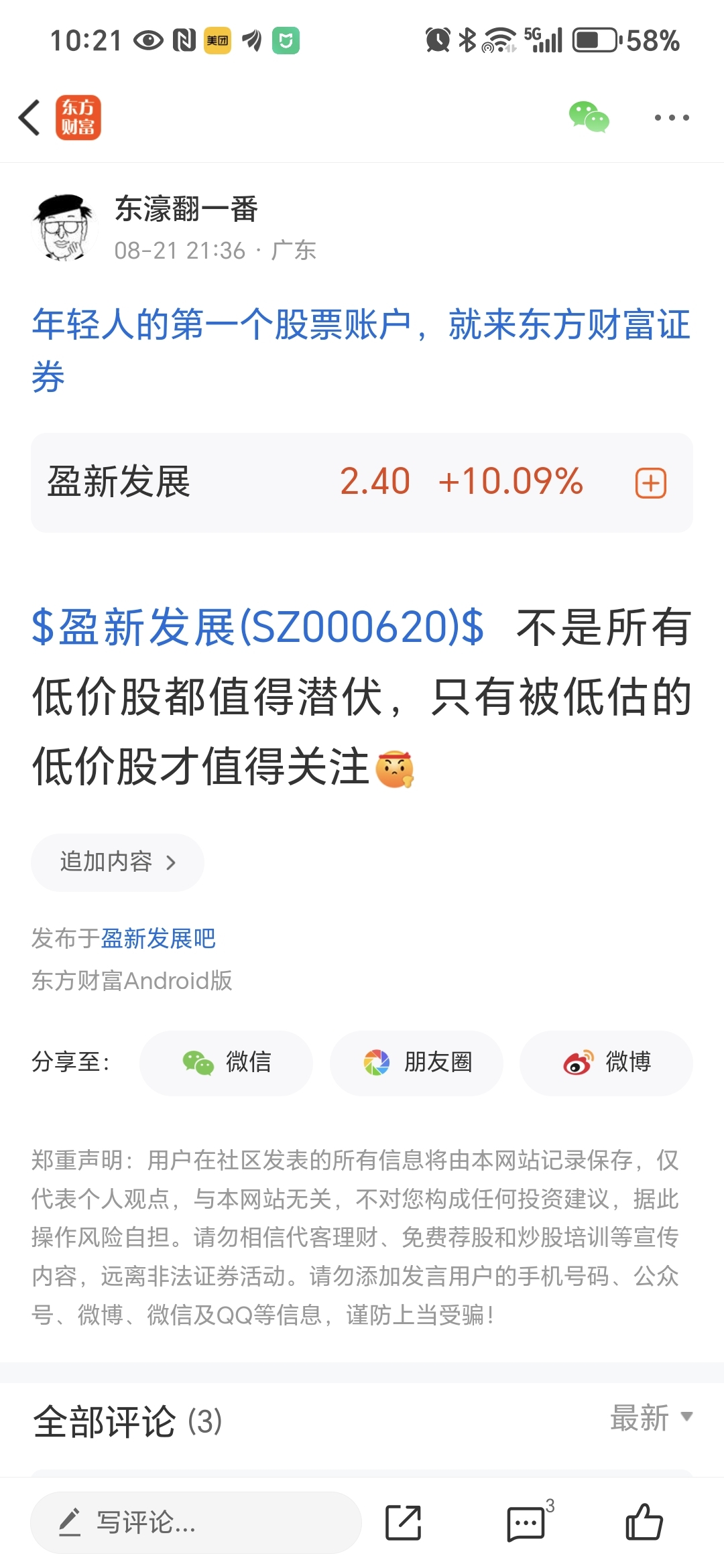 $盈新发展(SZ000620)$ 恭喜潜伏者