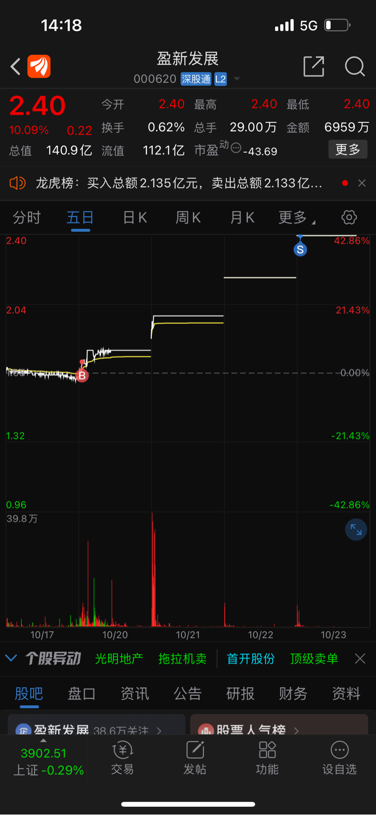 $盈新发展(SZ000620)$ 不贪,祝留下的兄弟们……