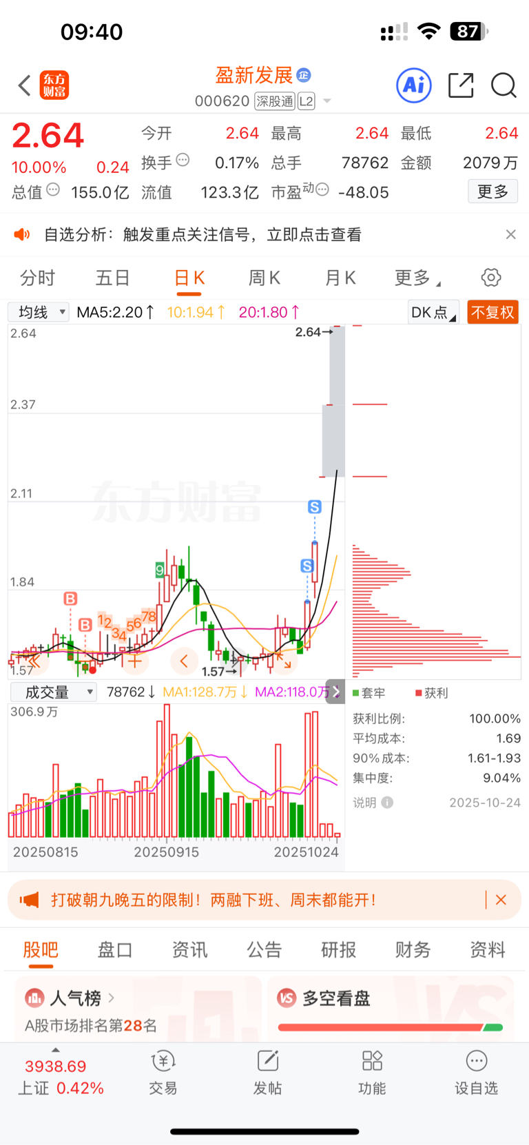 $盈新发展(SZ000620)$ 主力大佬,今年太多,继续拉爆