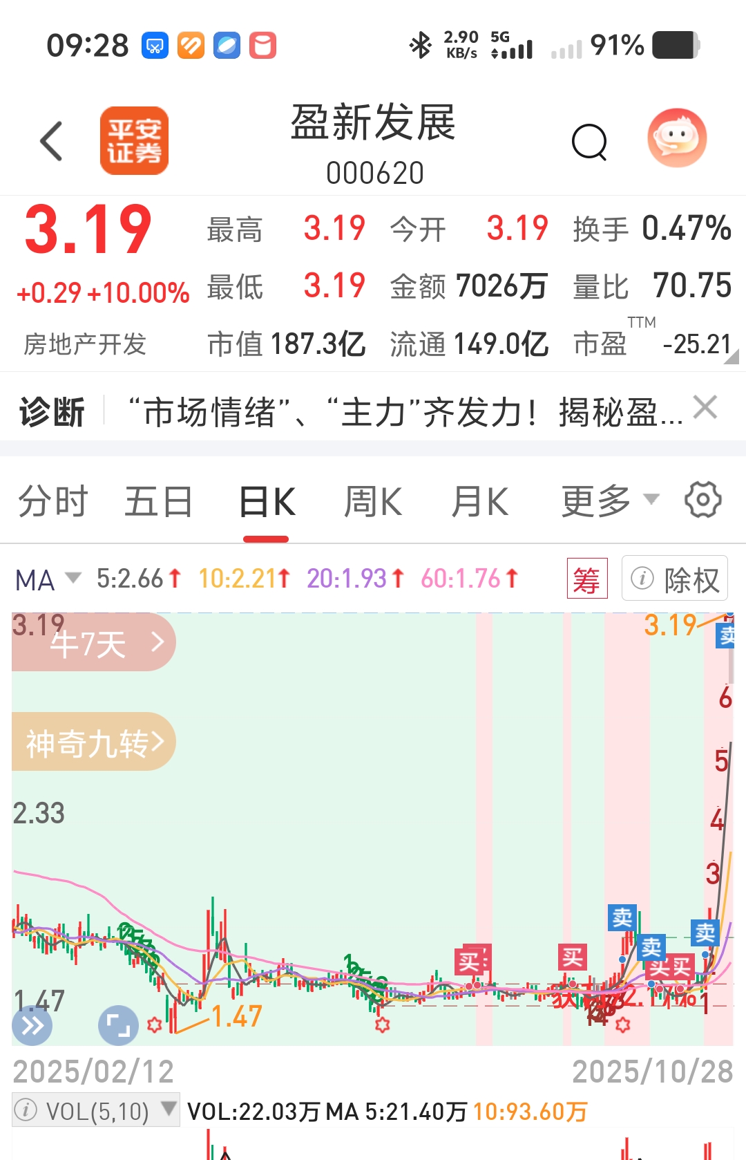 $盈新发展(SZ000620)$ 不知道对不对,七个涨停板我都OK了,给主力也一点赚钱的机会