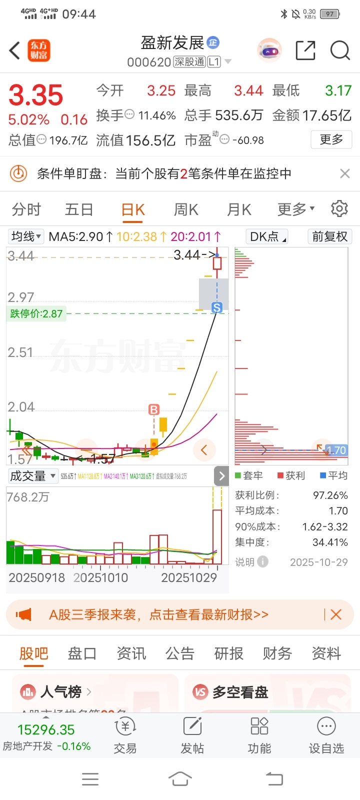 $盈新发展(SZ000620)$ 今天放量有点难受,以为还有几个板的