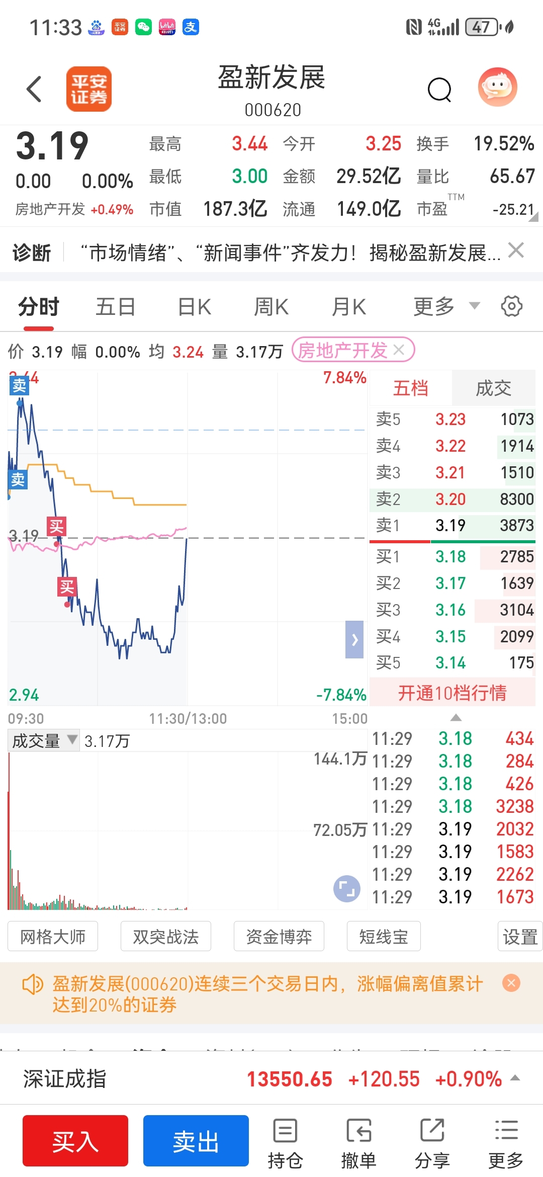 $盈新发展(SZ000620)$ 我感觉还能留一留,按照新规10日不能超100,大概率横盘3天,下周如果能涨,应该在200,就是5块附近,今天t了,贴图为证,不出大阴不卖的