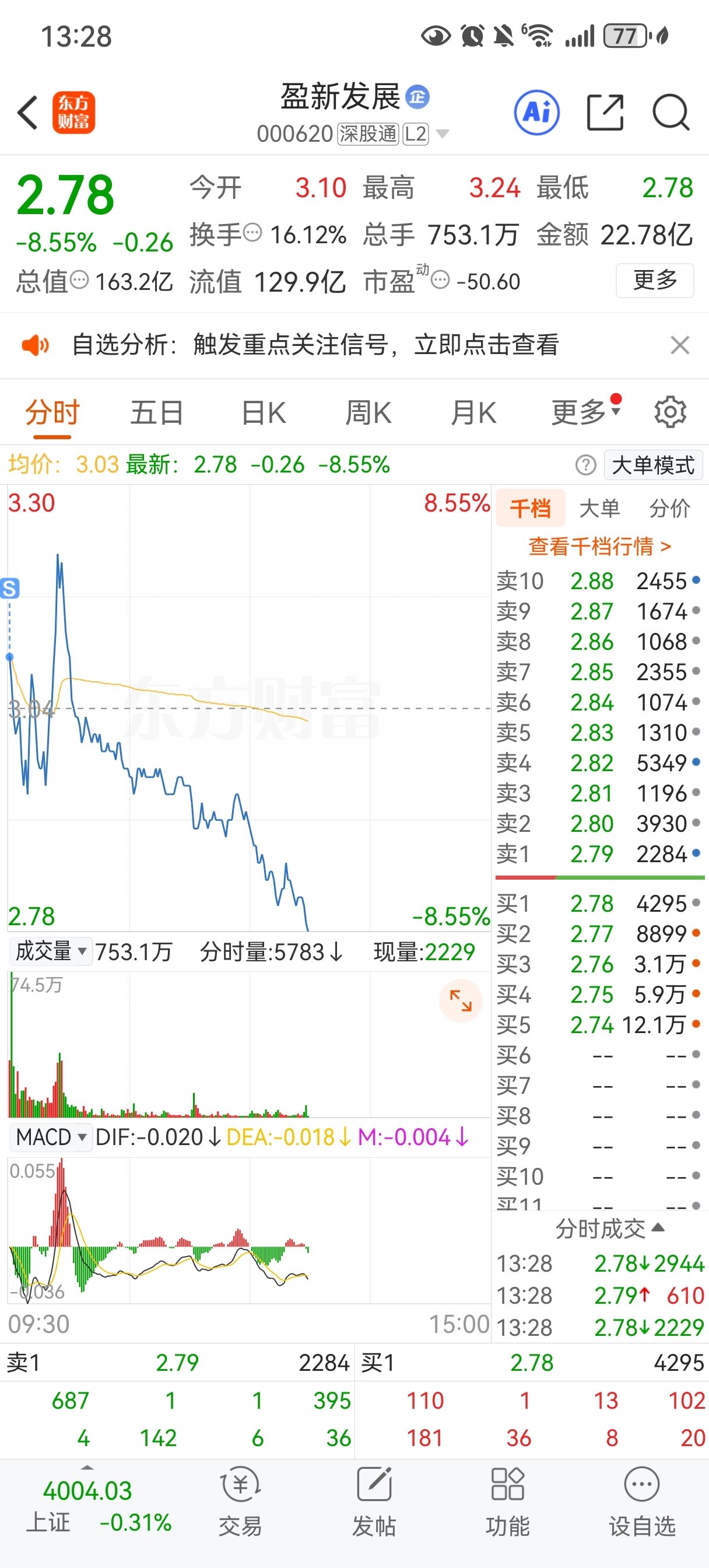 $盈新发展(SZ000620)$ 感谢,企稳了再回来。