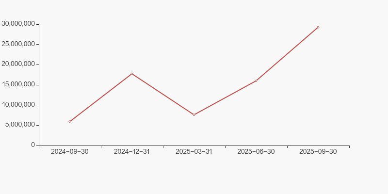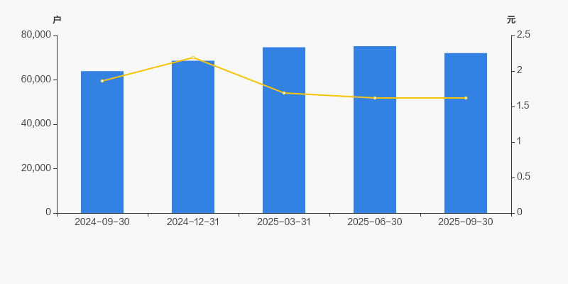 2024年9月30日至今,公司股东户数显著增长,区间涨幅为12.74%。2024年9月30日至2025年9月30日区间股价下降12.90%。