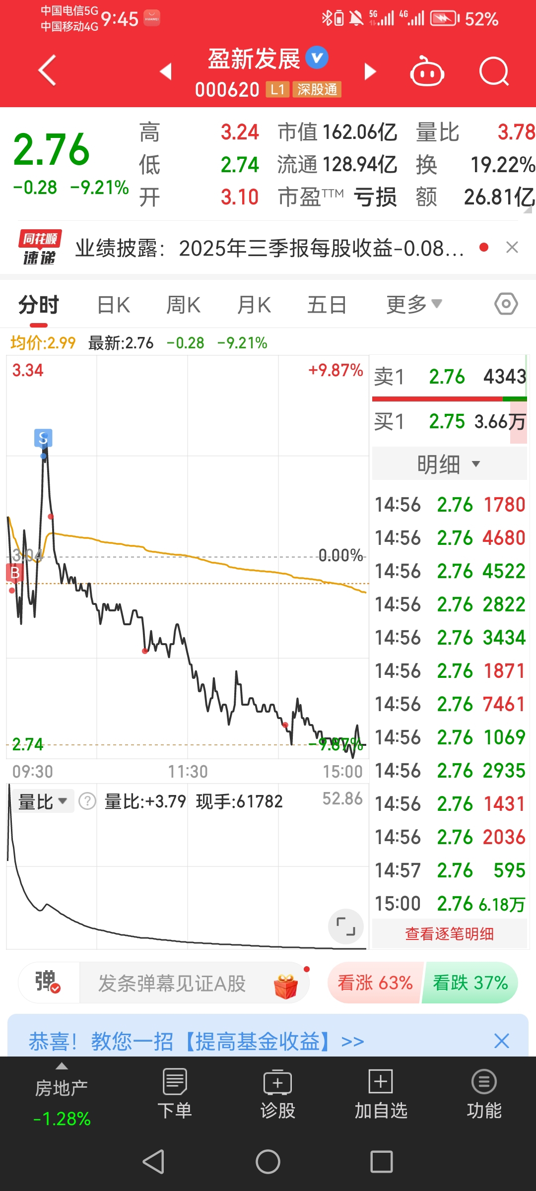 $盈新发展(SZ000620)$  早上冲高卖了本来刚刚回本,后来手痒又进来了,明天冲高让我回本再不进了