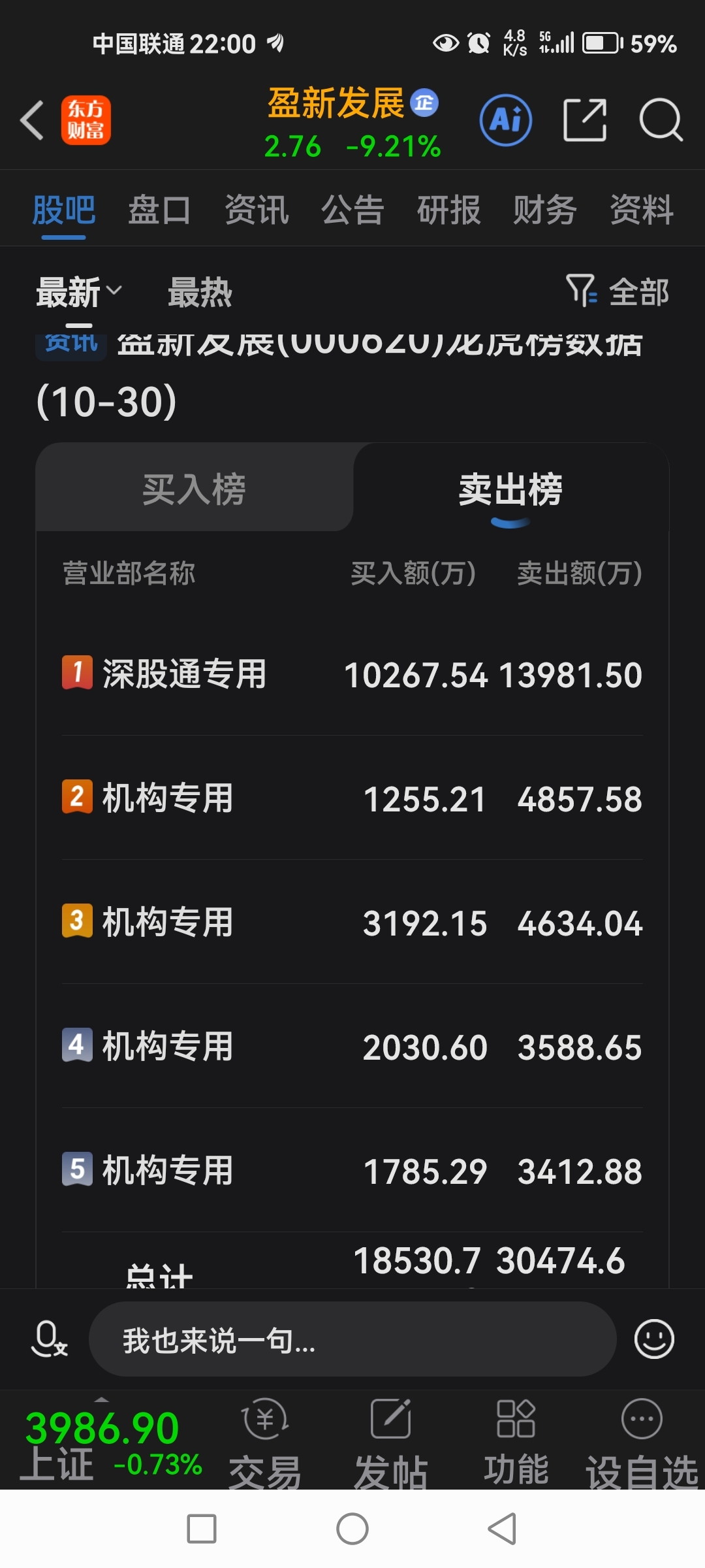$盈新发展(SZ000620)$ 机构成功撤退,早上上车的接盘侠吃大面饱饱的