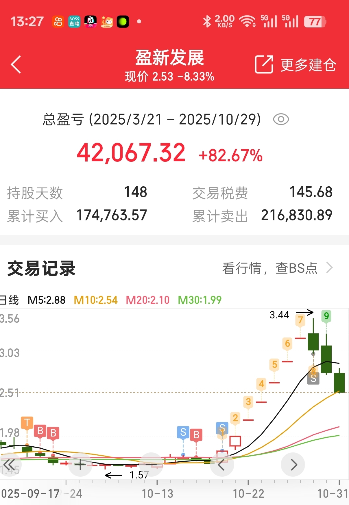 $盈新发展(SZ000620)$ 操作不够好,但是也是够了