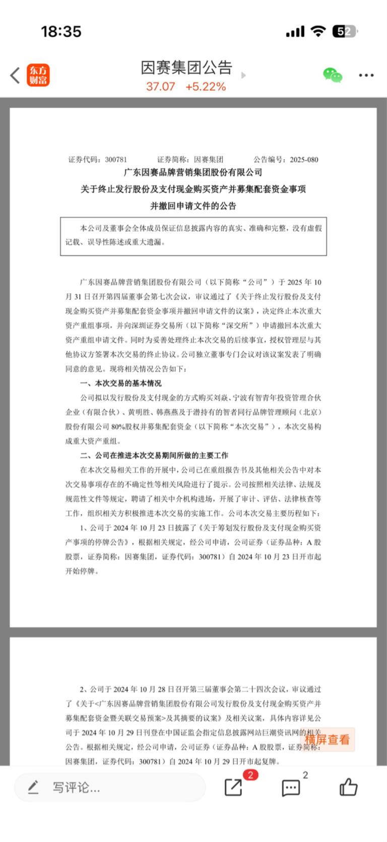$盈新发展(SZ000620)$ 一模一样的套路方式,先发布重组,开播,出货后宣布终止重组。