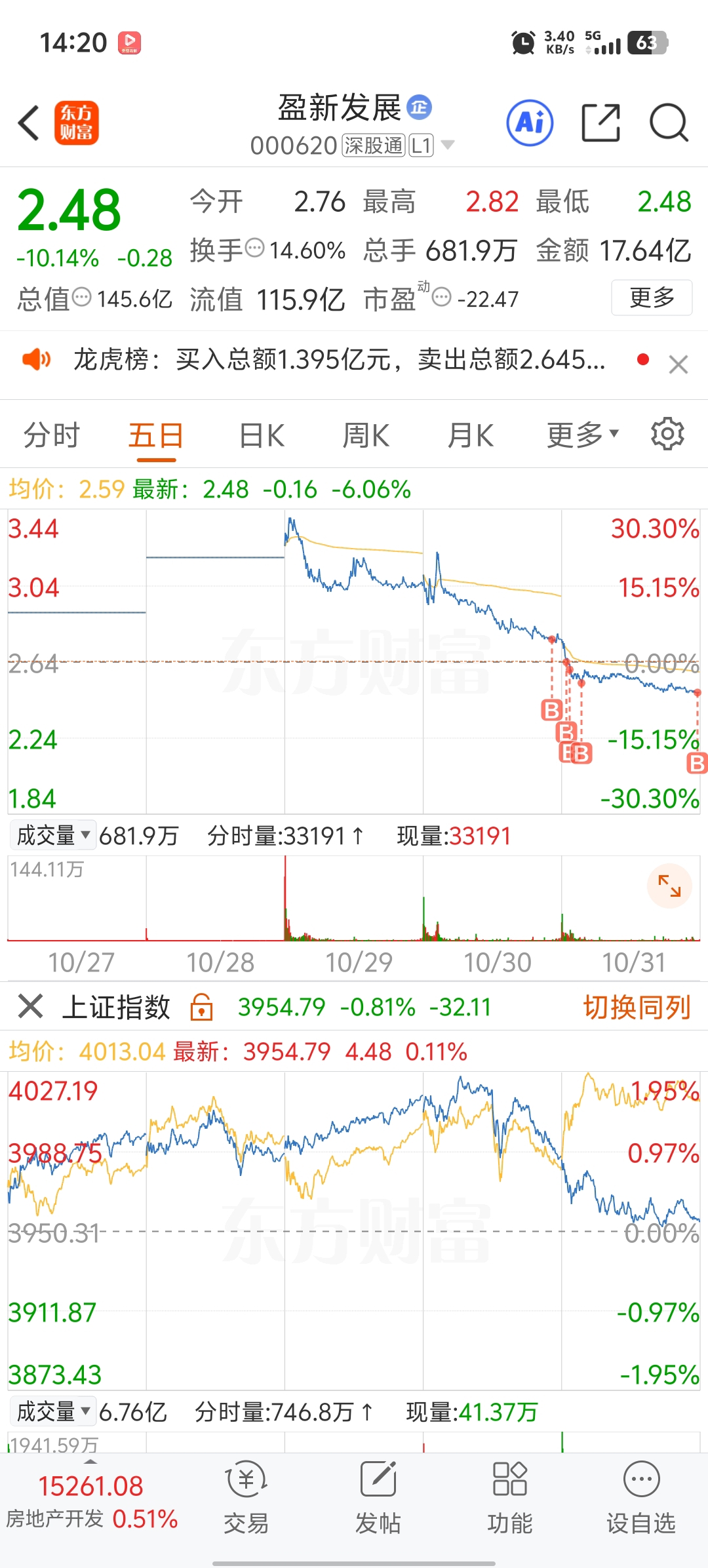$盈新发展(SZ000620)$ 不管收购为真假消息 盈新发展怎么也值三块