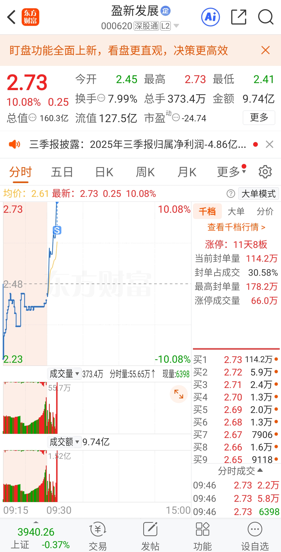 $盈新发展(SZ000620)$ 先跑了哈哈哈,留下的发财。三季度亏损3.25个亿,一二季度才亏几百万,属于业绩暴雷。