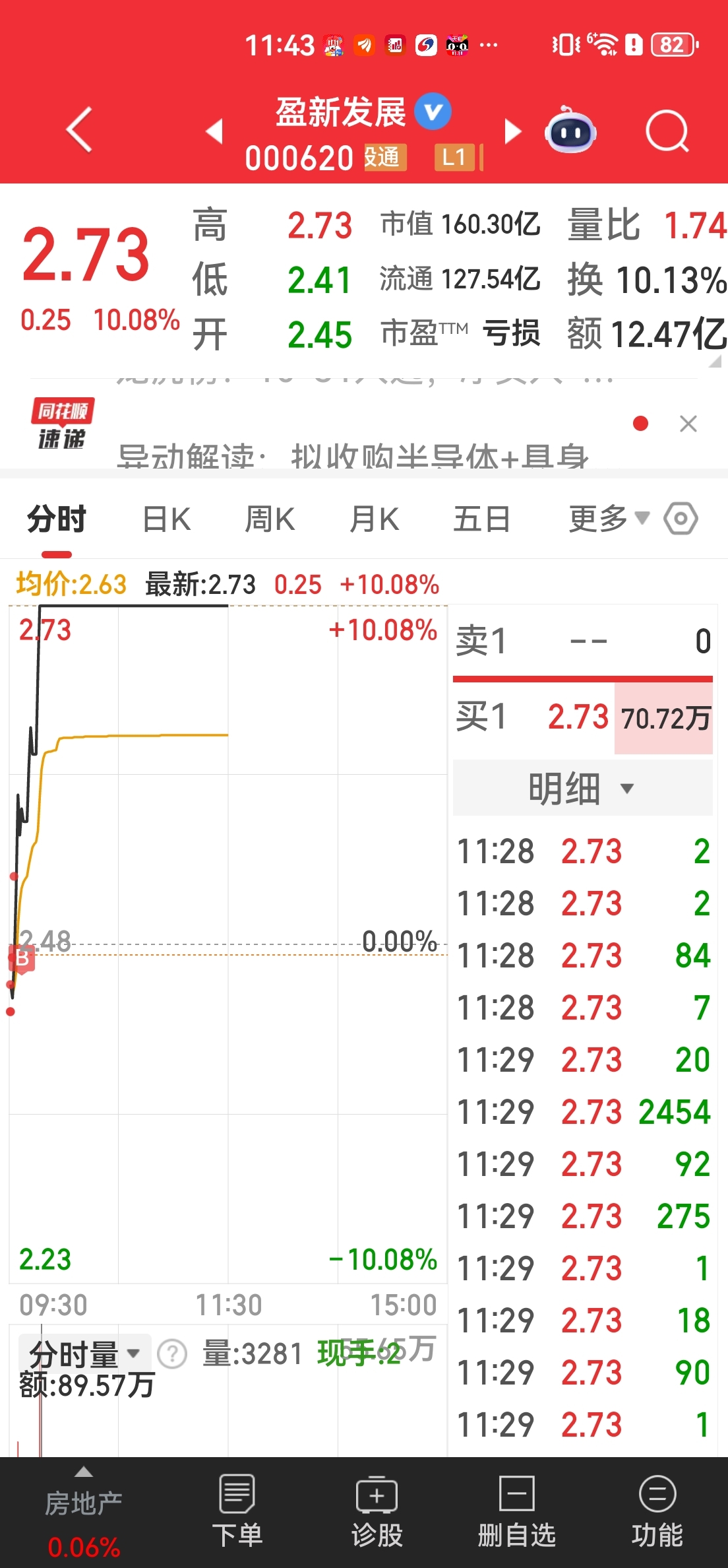 $盈新发展(SZ000620)$ 天时地利人和,开仓留念。