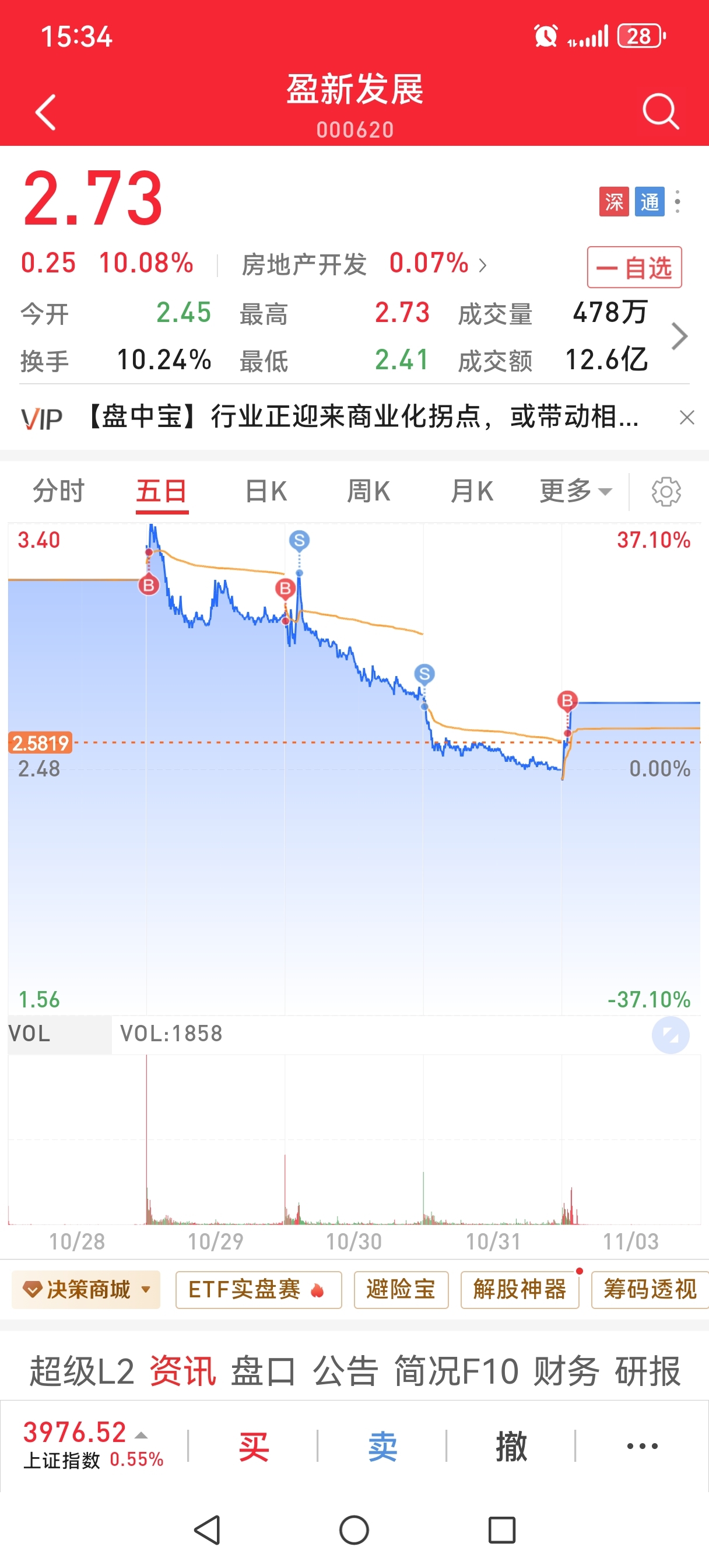 $盈新发展(SZ000620)$ 尽力了,看着平潭也是一字上来断板不停新高,在看看你的A杀,道心都要受损了,明天还能在来一个涨停吗,让我回本