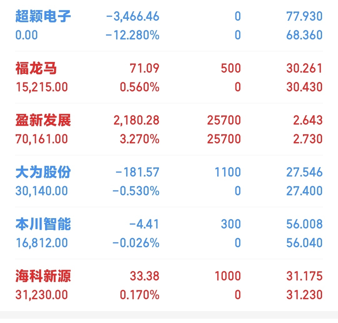 $盈新发展(SZ000620)$ $超颖电子(SH603175)$ 超颖清仓喽,盈新后悔减半仓