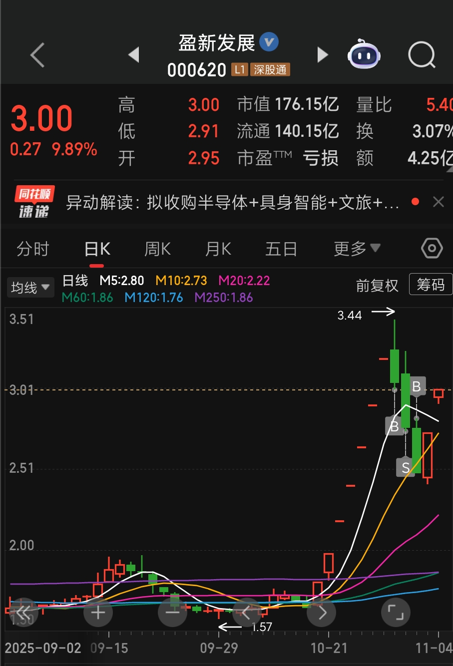 $盈新发展(SZ000620)$ 今天早上没敢加仓,有点怂了。只有一层仓位追高,割肉,抄底,哎,可惜。