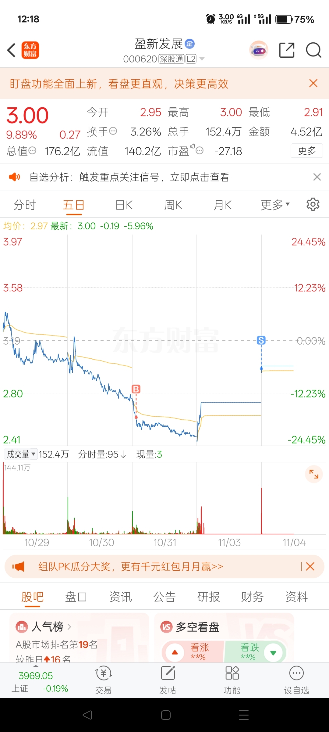 $盈新发展(SZ000620)$ 胆子太小了,跑了
