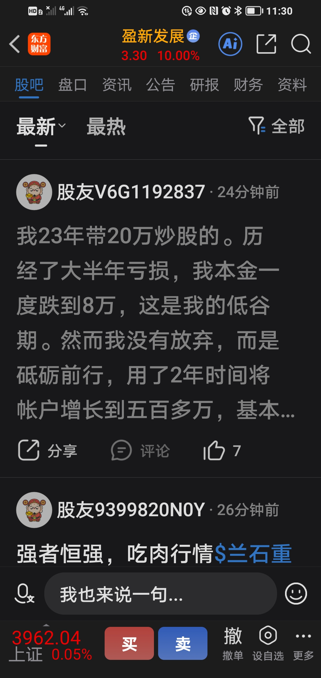 $盈新发展(SZ000620)$ 这个人把评论关了是一个骗子