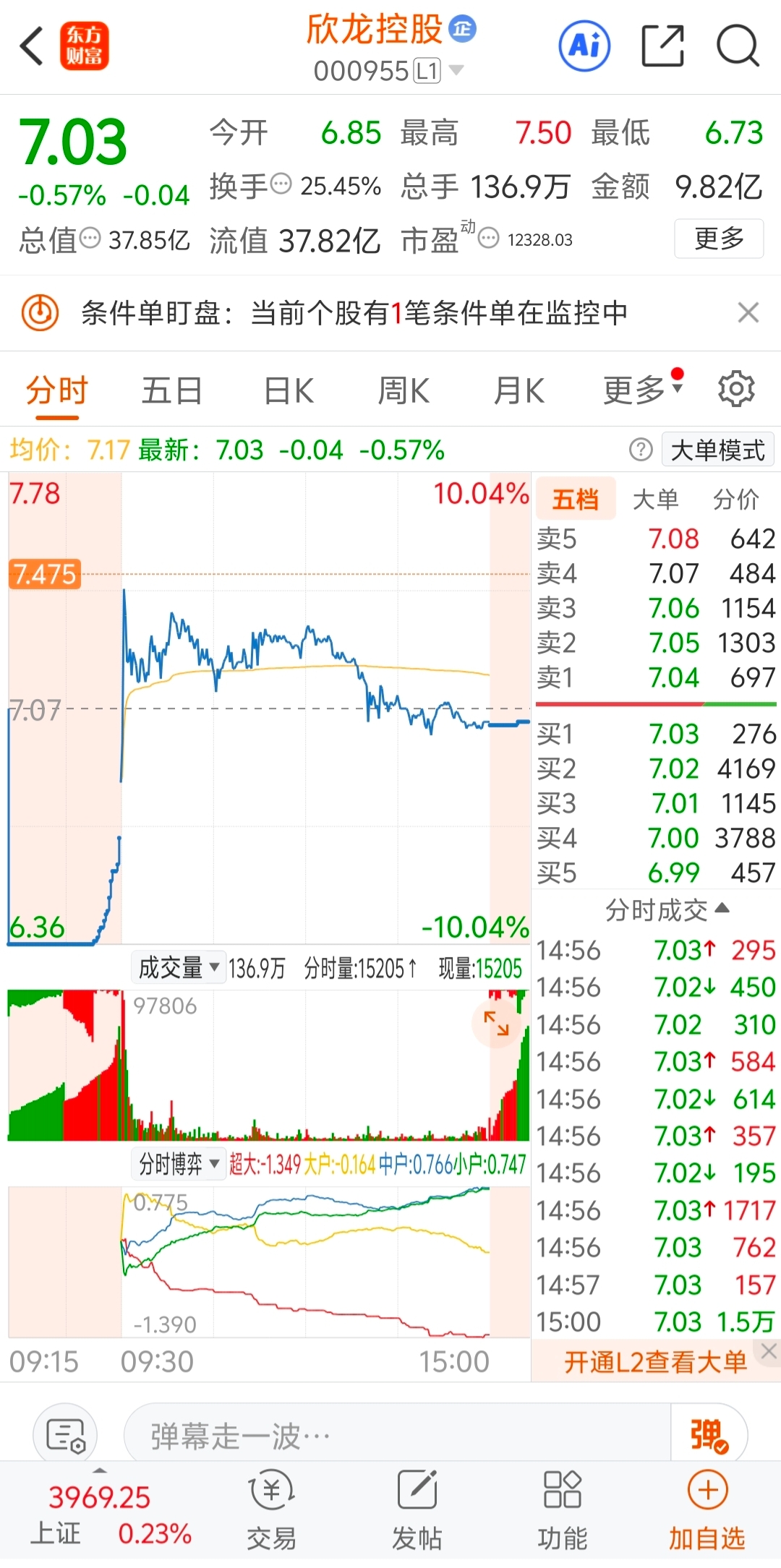 昨天离开了平潭发展,今天来到了盈新发展欣龙控股今天应该跑的……不舍得割肉没跑成,