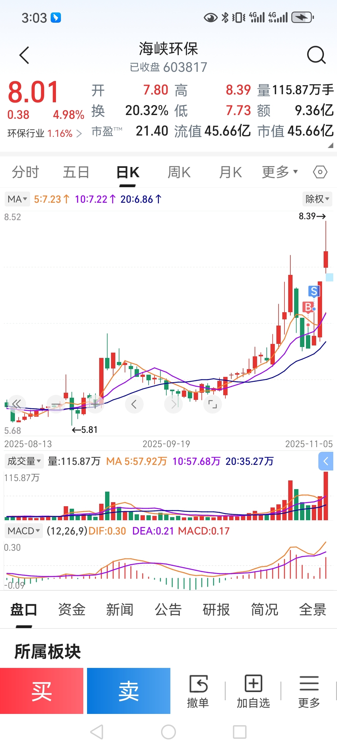 最近财运不行,前天洪通、神马和雪人一起选出来的,买了洪通,涨了2个点,另外两个没买2天2个涨停,海峡环保拿了一天刚卖就涨停。今天又被统一骗套了,还不如继续搞平潭。早盘看好的新金路、杨子新材明天给我大涨。