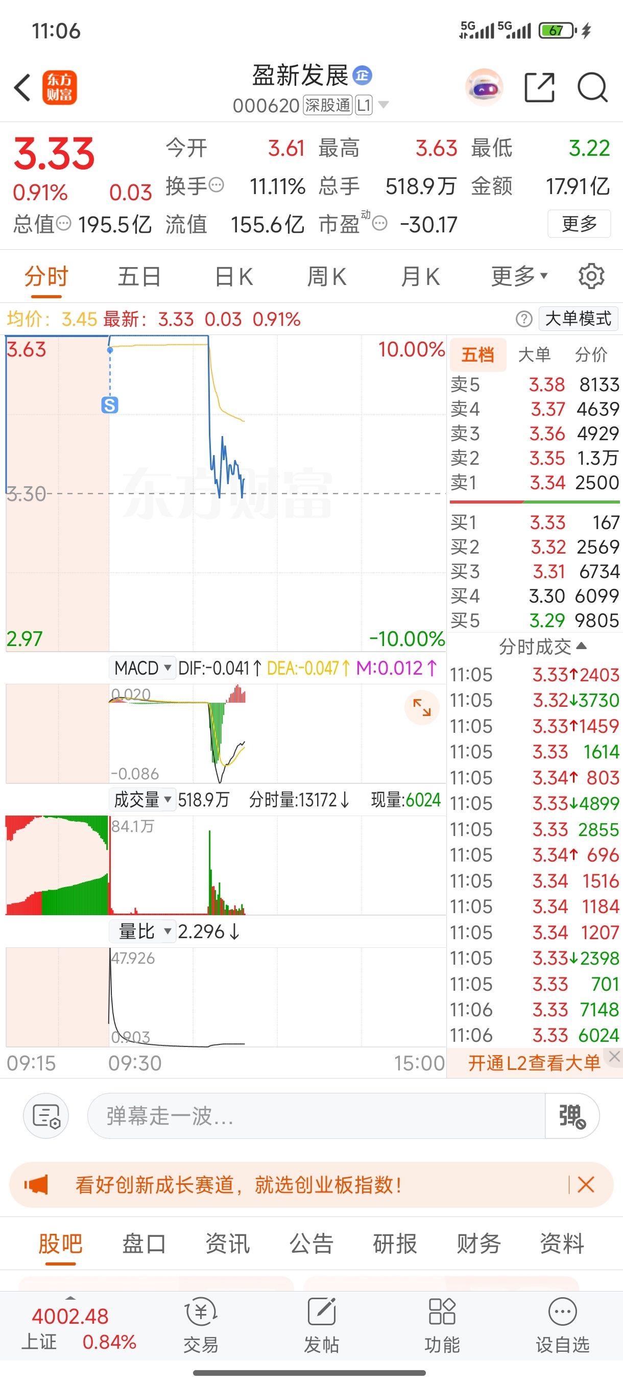 $盈新发展(SZ000620)$ 我还以为我会后悔今天卖了呢