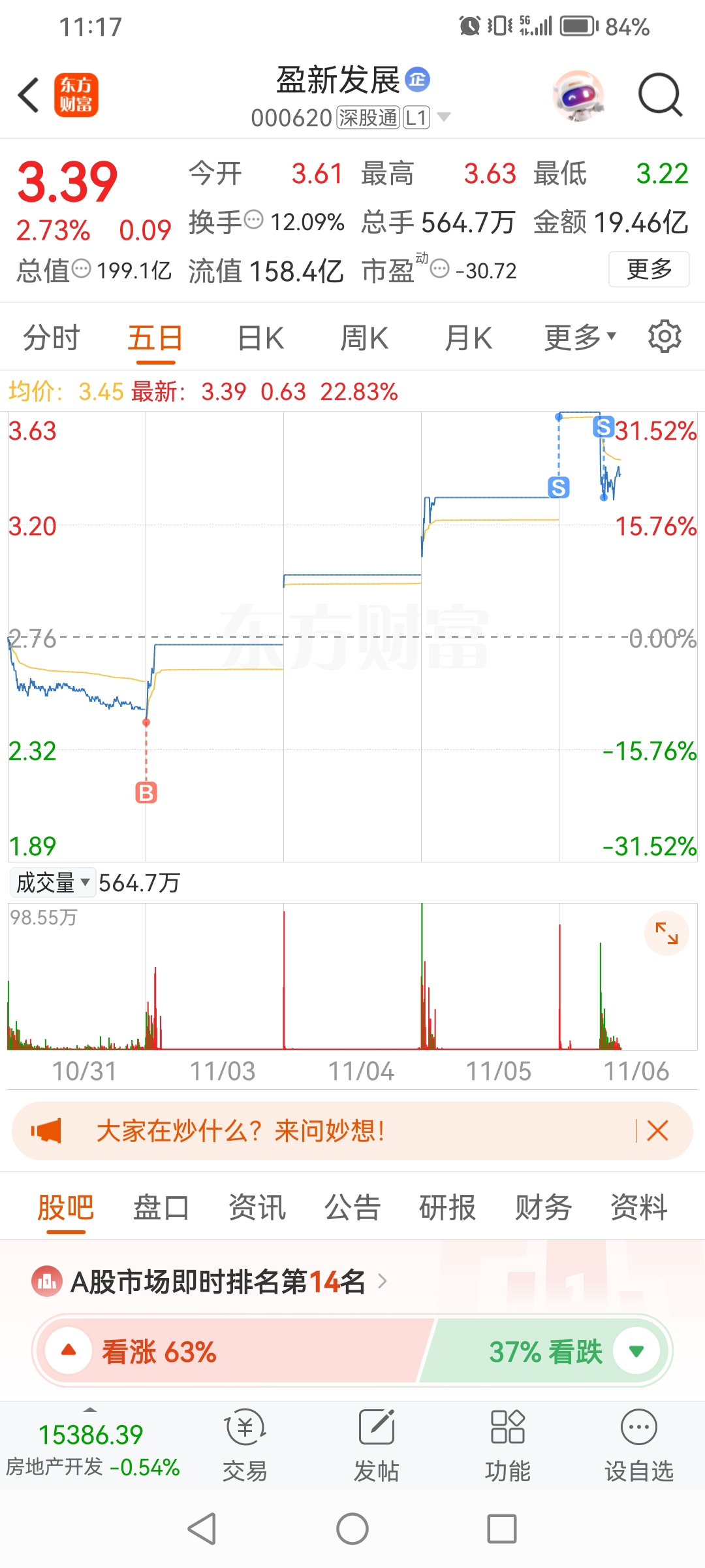 $盈新发展(SZ000620)$ 忘记设置条件了,没盯盘,估计要回踩线了,等明天看机会接回来,今天看你们打架,后面应该还能涨。