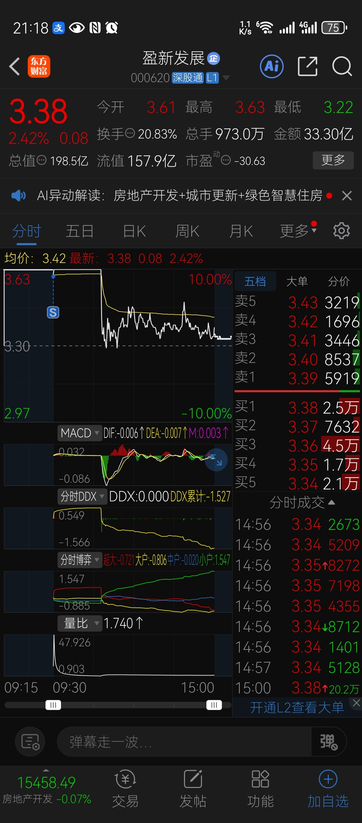 $盈新发展(SZ000620)$ 感觉他不靠谱,开盘就走了