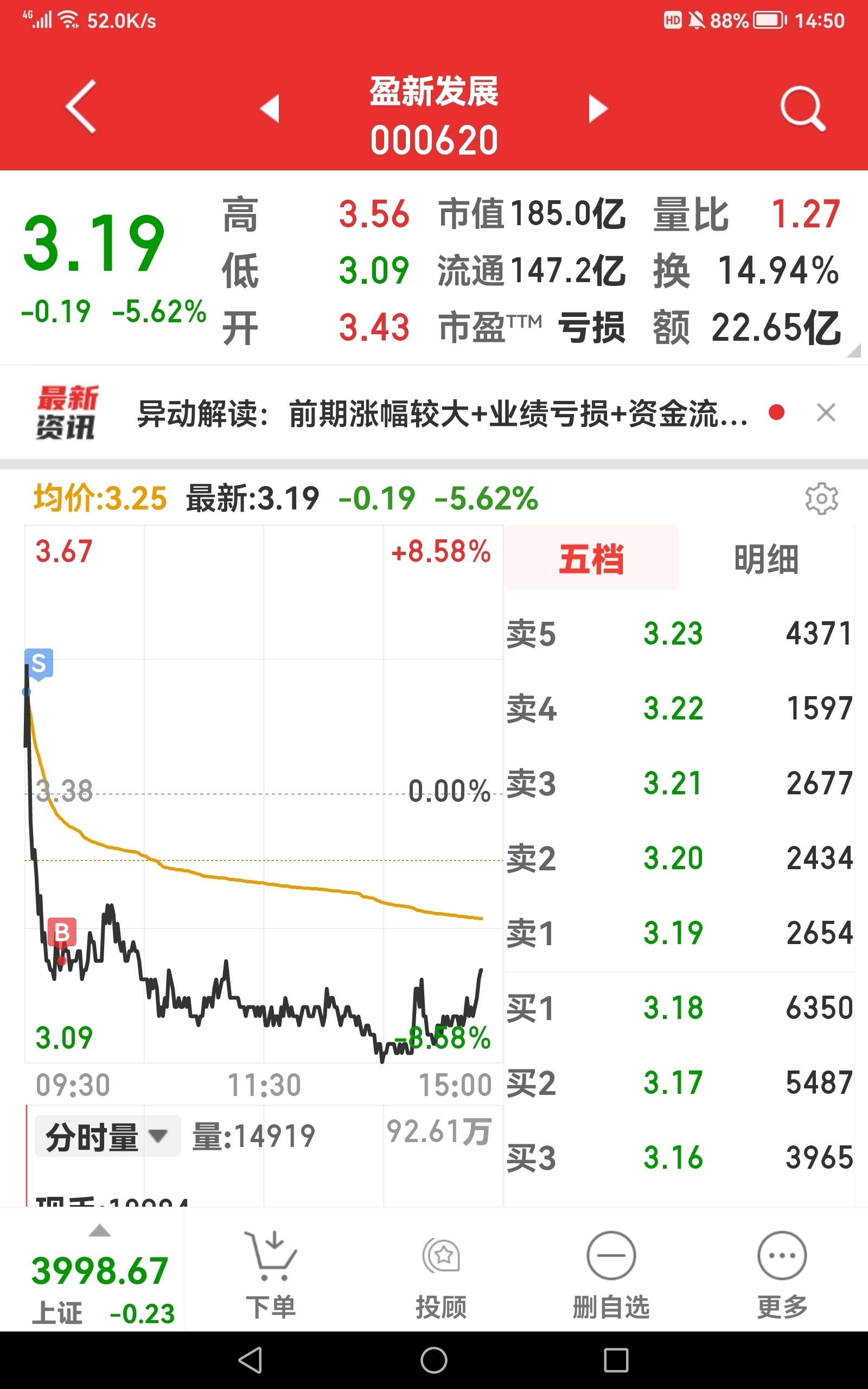 $盈新发展(SZ000620)$ 上星期五T了一下,今天状态很好,伺机而动吧。