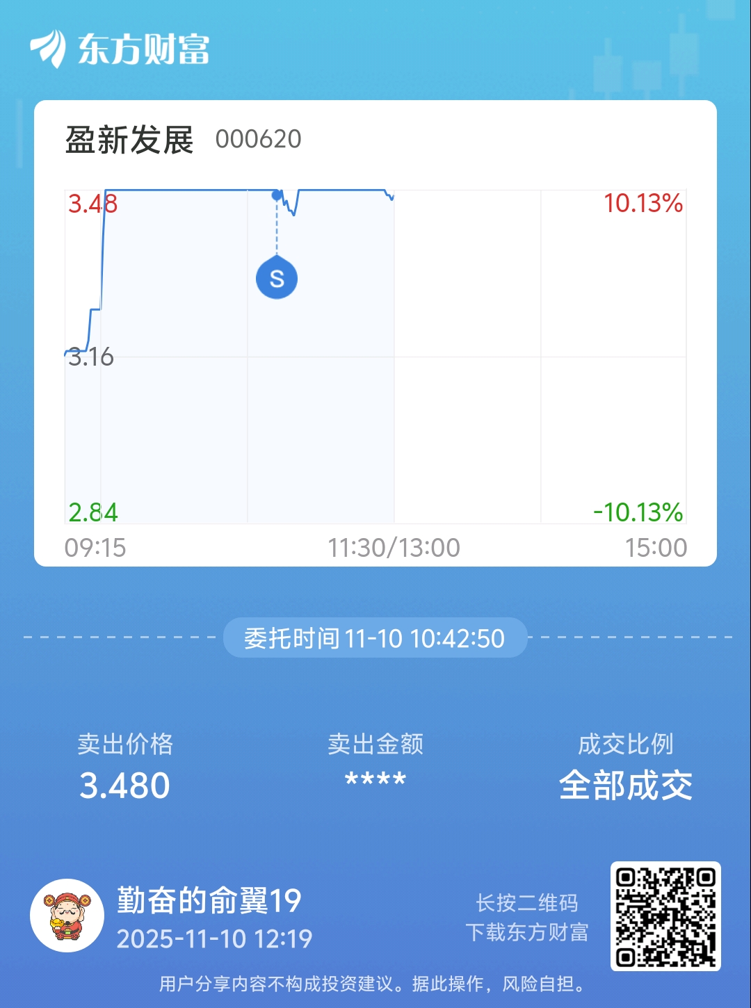 $盈新发展(SZ000620)$ 炸板最后一刻跑了 吃了9个点 别肉没吃到喝口汤还蹦了牙。