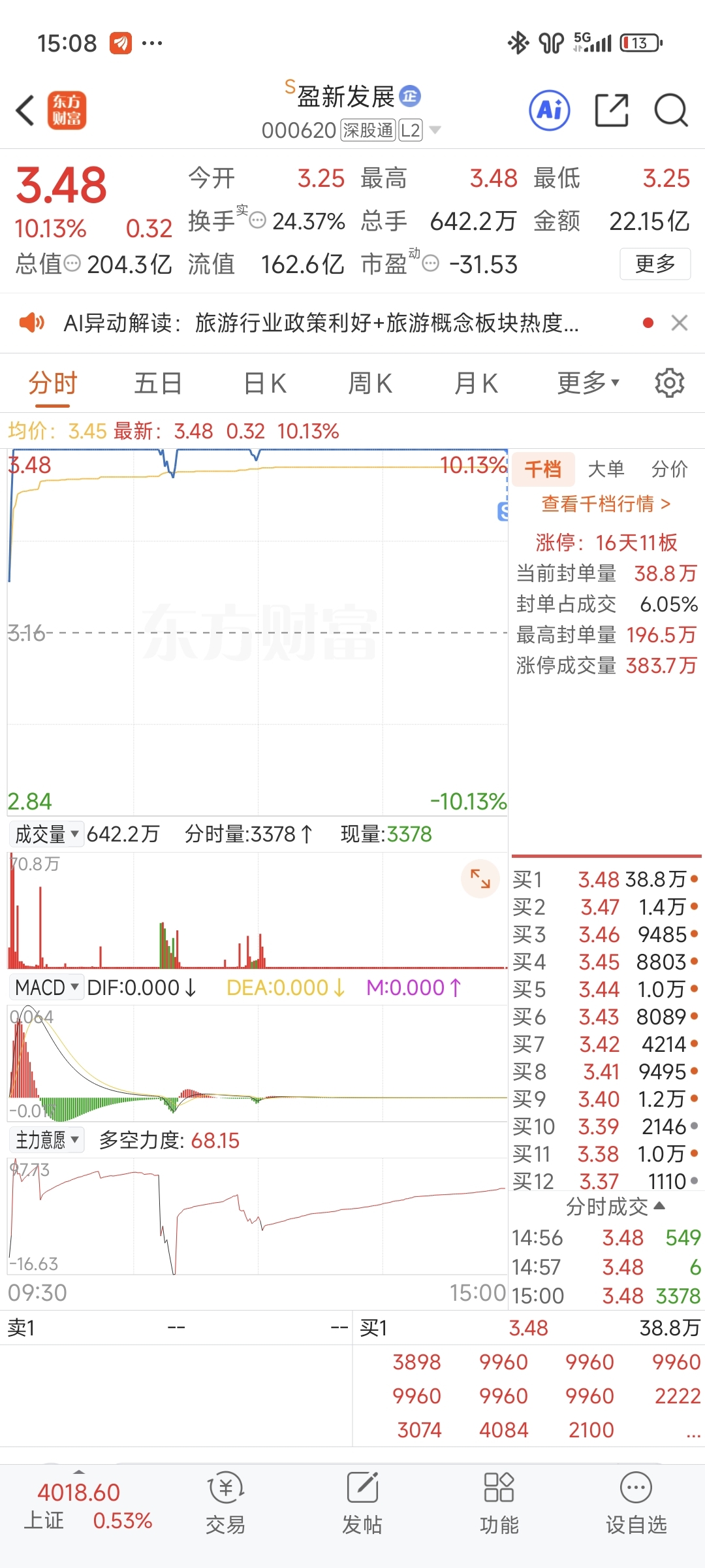 想想还是算了,离前高才一毛钱,明天开始我要玩新周期了,没卖的明天从从容容卖掉就行