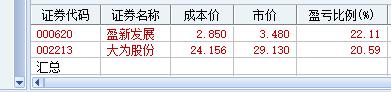 目前大为股份浮盈20.59% 盈新发展浮盈22.11%