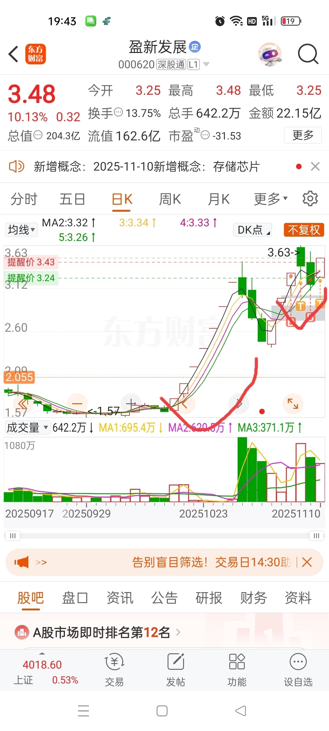 $盈新发展(SZ000620)$ 右侧交易篇: 主力放量阴线,左侧转右侧,我前两天就说了一次要重复一次左转右,左边的阳线量能要被右边吃完,就是形成你们所说的右侧交易,这种热门股肯定是盘中转右侧,等收盘肯定又差一天了,做低位低吸也是一样逻辑,就是我说的右下阳 (主力阳肯定好一点)我把自己学到的分享,不喜勿喷