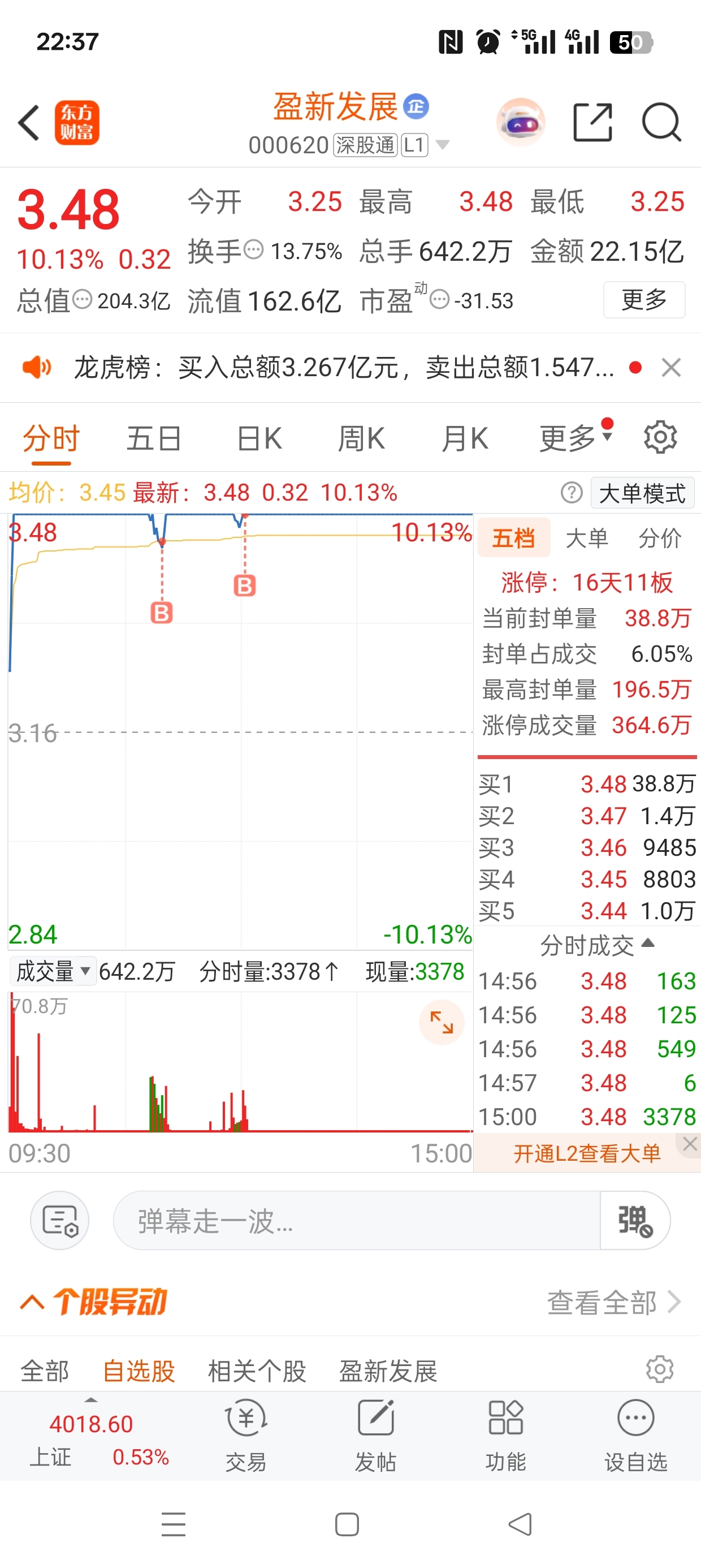 $盈新发展(SZ000620)$ 今天开板是给机会,竞价红开,并且开盘直接冲涨停,说明资金一致看好,板上开板释放不坚定筹码,换手充分