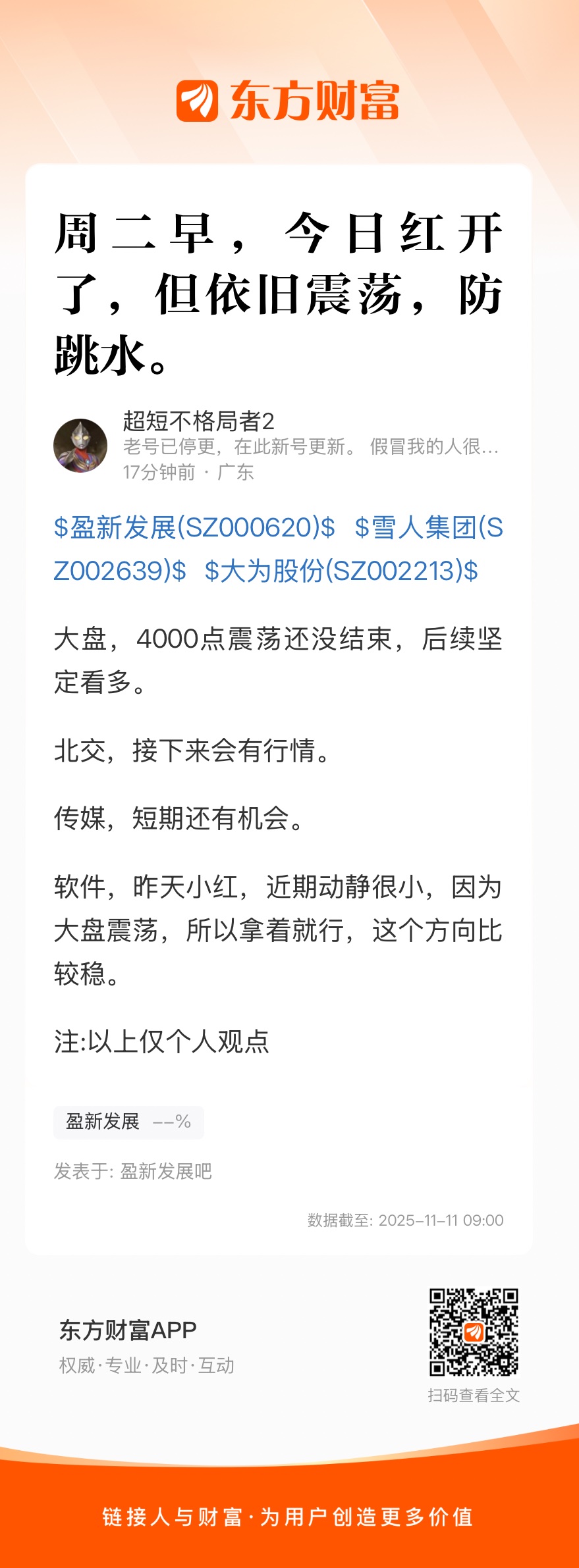 温馨提示: 1.根据《证券法》规定,禁止编造、传播虚假信息或者误导性信息,扰乱证券市场;2.用户在本社区发表的所有资料、言论等仅代表个人观点,与本网站立场无关,不对您构成任何投资建议。用户应基于自己的独立判断,自行决定证券投资并承担相应风险。《东方财富社区管理规定》