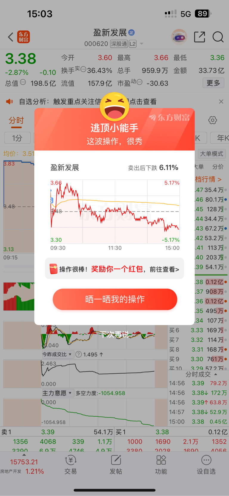 $盈新发展(SZ000620)$ 幸好昨天复盘就发现这个就是一个套利板,集合竞价就跑路了,没有贪吃