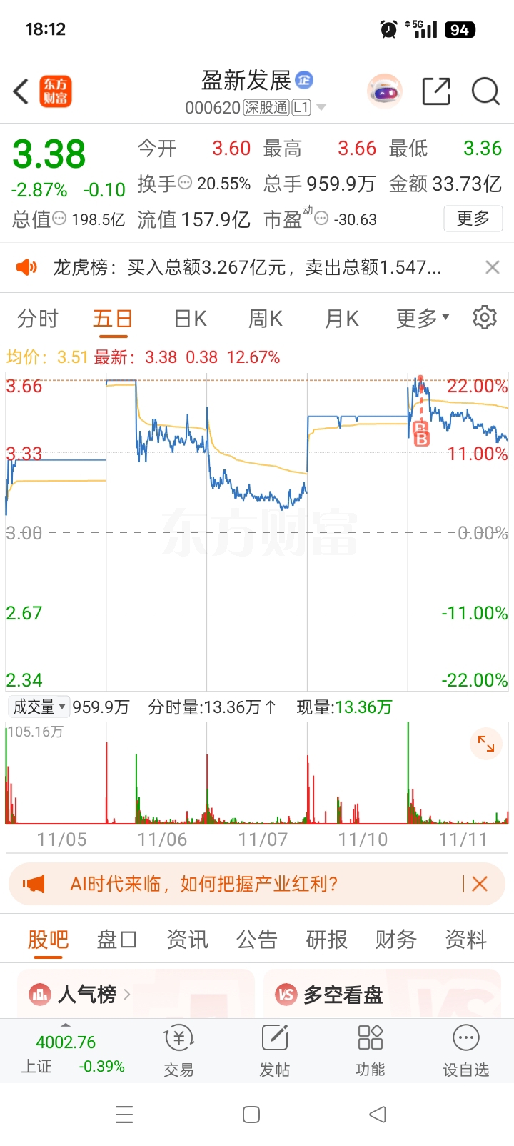 $盈新发展(SZ000620)$ 完了今天挂在山顶了