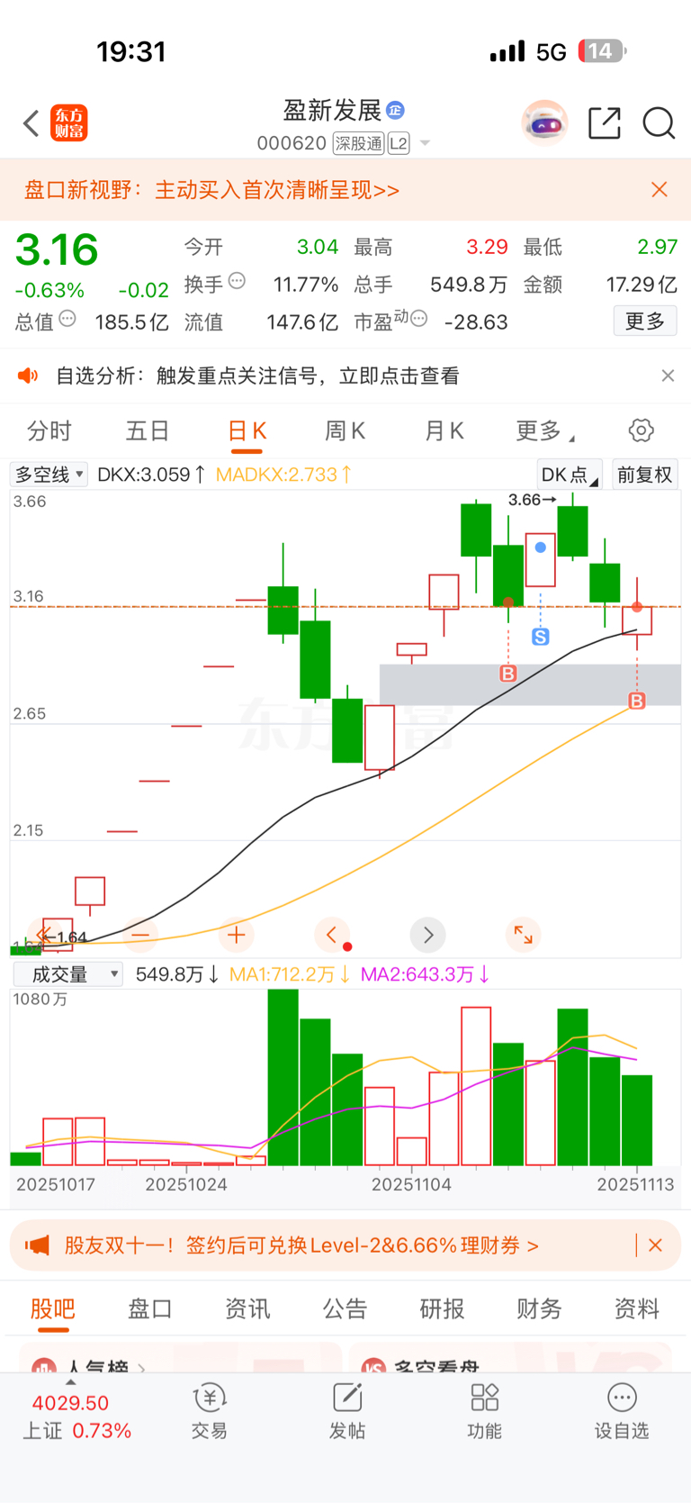 $盈新发展(SZ000620)$ 发现很多家人和我一样的操作。哈哈哈