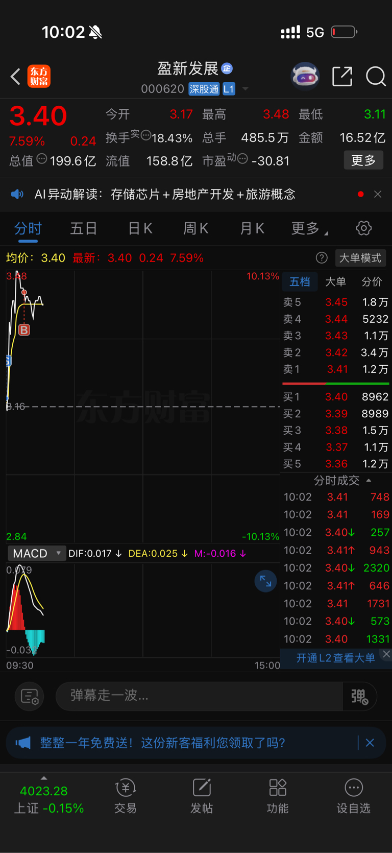 $盈新发展(SZ000620)$ 满仓做了个倒 T,不过今天真猛,第一目标价 6 块,先看翻倍