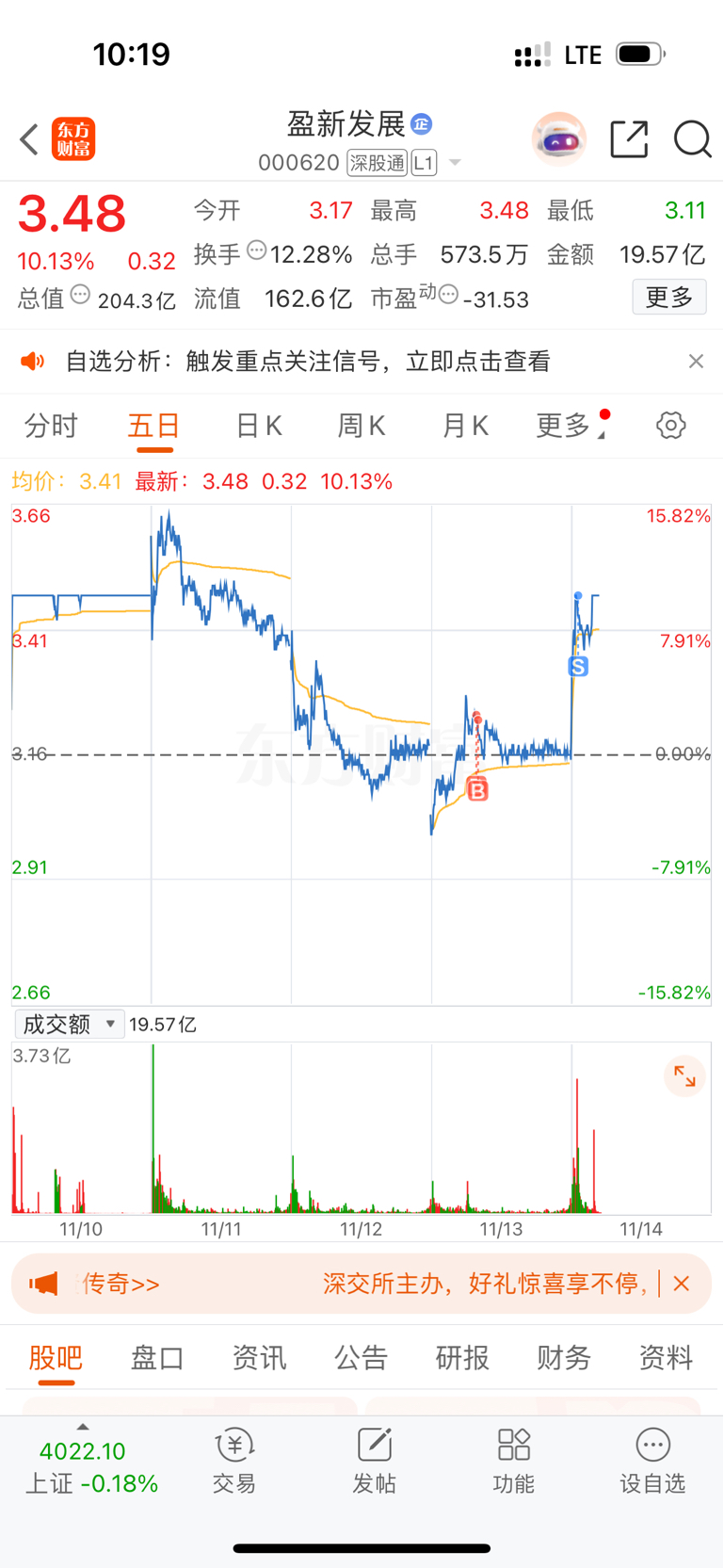 $盈新发展(SZ000620)$ 昨天进的被洗出去了
