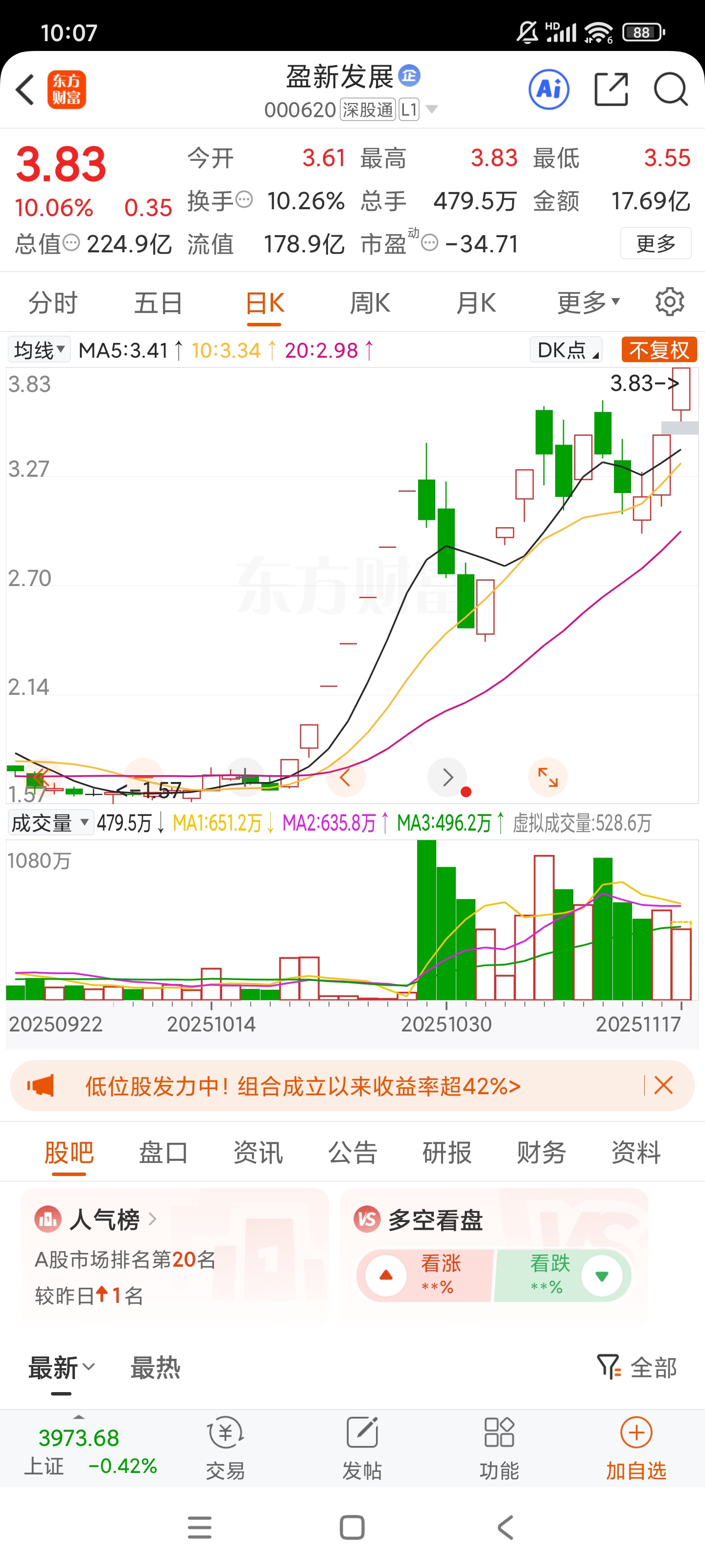 $盈新发展(SZ000620)$ 盈新下一平潭发展。早盘板上卖了一半仓位宝鹰,5个点买入盈新发展。