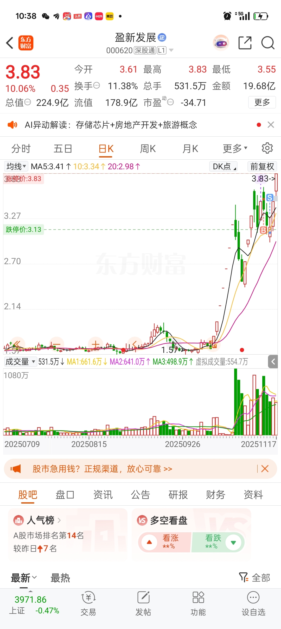 $盈新发展(SZ000620)$ 草,我这个操作几分