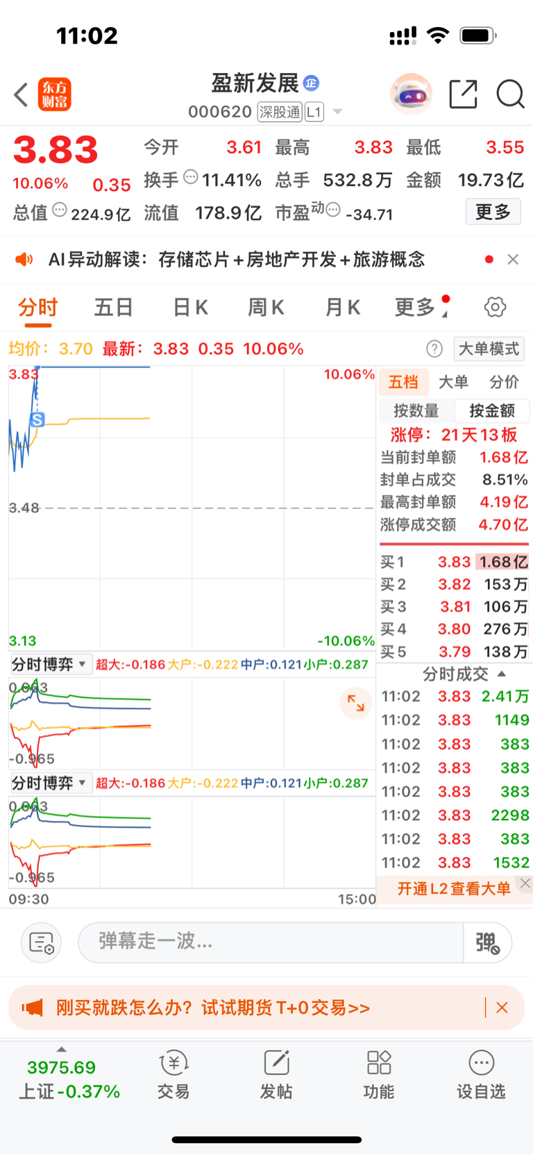 $盈新发展(SZ000620)$ 大盘下跌趋势!还是选择落袋为安