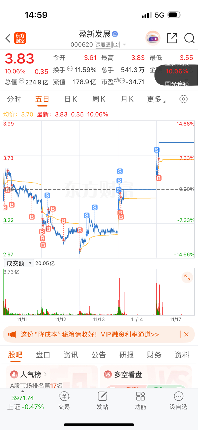 $盈新发展(SZ000620)$ 这个股太吓人了,玩了半个月,心跳都加速 挣它的钱太难了