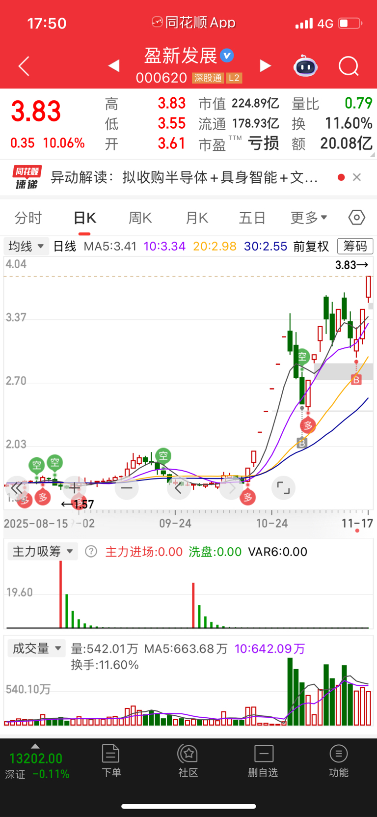 $盈新发展(SZ000620)$ 第一目标价位五块