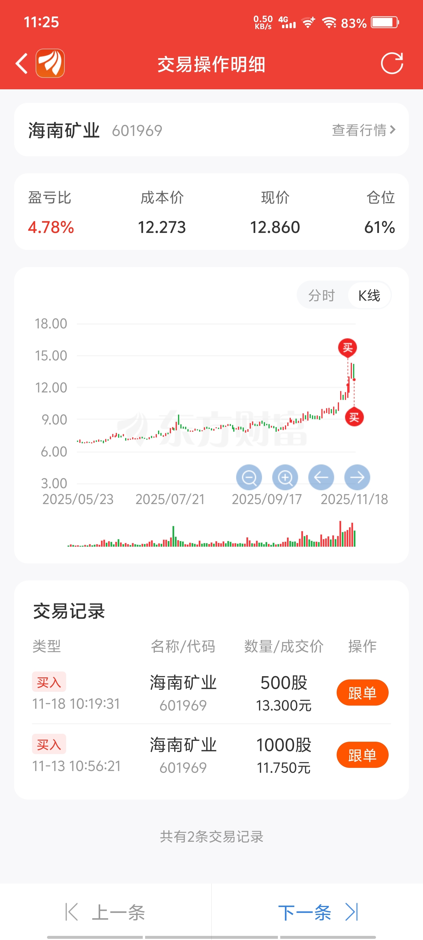 看了你们的操作,简直无语,一个盈新发展红了不跑,一个不跑还加仓。这个海南矿业就更