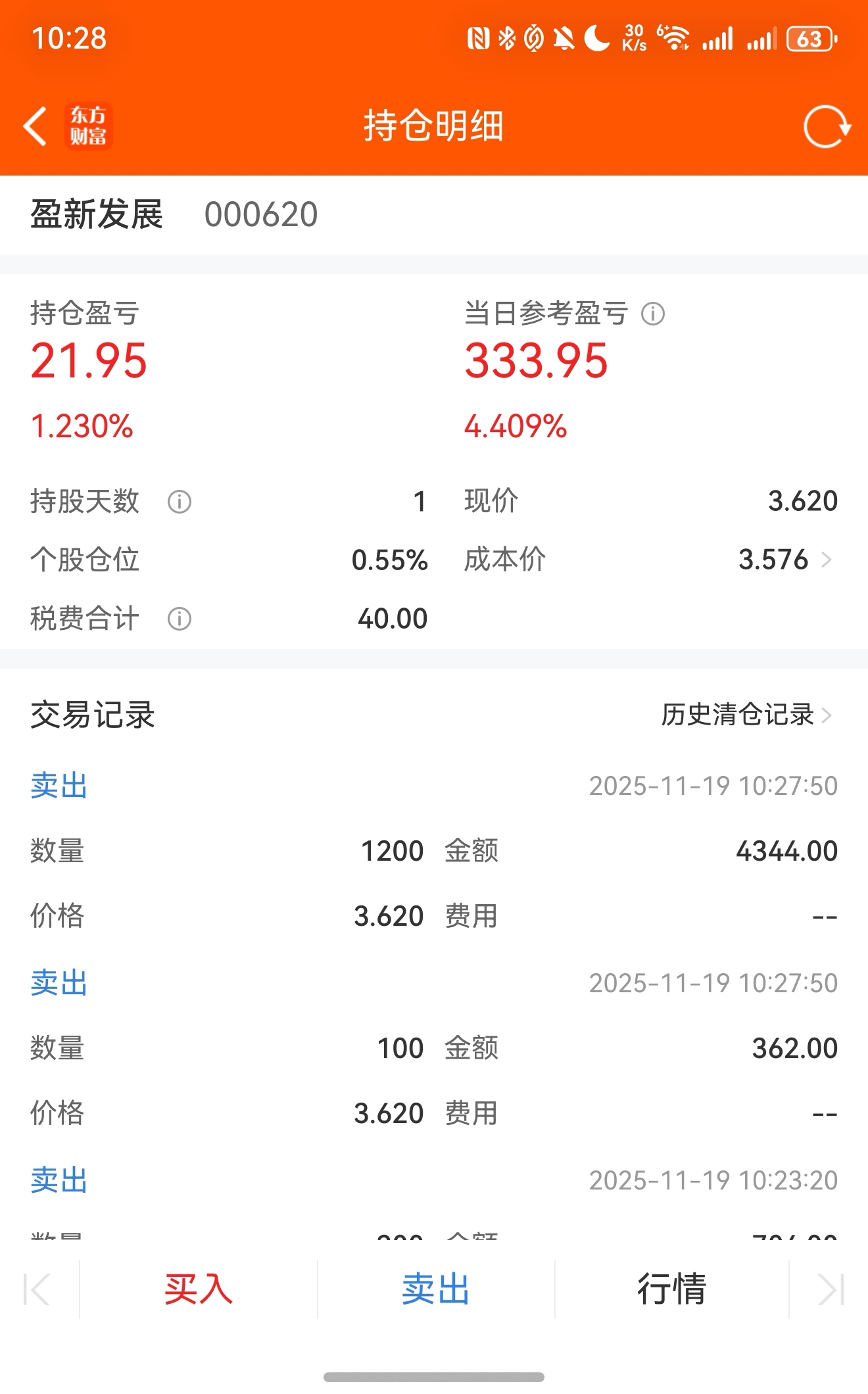 $盈新发展(SZ000620)$ 低点的时候补仓了500股,昨天进的已经卖了,看明天能不能再涨涨